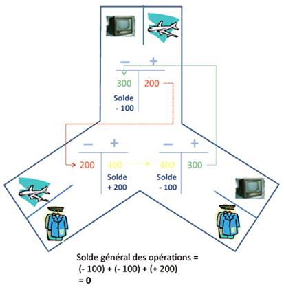 Nous observons très clairement qu'avec trois agents qui effectuent chacun deux opérations commerciales, une d'achat et une de vente, les soldes de chaque compte de compensation sont, soit positifs ou soit négatifs. Cependant nous voyons aussi que la somme des soldes des trois comptes est égale à zéro (-100) + (-100) + (+200) = 0, ce qui correspond au solde permanent de la caisse. Nous pouvons multiplier à l'infini les agents économiques (les comptes) ou encore les opérations (transactions), notre solde restera éternellement à zéro. Au sein de notre Caisse de Transactions, aucun gonflement, aucun chaos, l'équilibre est, et reste, permanent. La Caisse est l'exact reflet des opérations économique de services et de marchandises. En aucun cas elle ne constitue un marché parallèle sujet à des variations. Cette différence avec le système bancaire est fondamentale. Le principe de la Caisse peut sembler similaire à une banque dans son apparence, il n'en est rien. Car l'essence même de son principe est différente. La banque repose sur la gestion d'instruments de paiements, que l'on pourrait qualifier de matière porteuse d'une valeur économique servant d'instrument aux échanges commerciaux. Retirez l'épargne ou le marché financier ou les banques s'approvisionnent et tout s'écroule. La Caisse est pour sa part un simple « banc » des temps moderne qui inscrit dans ses comptes les opérations économiques des agents qui transigent entre eux. A-t-on déjà vu des logiciels comptables générer des crises car les opérations inscrites dans ses divers comptes engendraient des spéculations ou de l'inflation ? Non jamais. Au sein de la Caisse, il règne une stabilité permanente. Un autre point capital est à noter, le crédit est quasi sans limite et sans risque. Prenons un exemple, une caisse pourvu de plusieurs milliers de fournisseurs fonctionne normalement, un nouvel agent arrive avec des besoins très importants. Il lui est accordé quelques millions d'euros de crédit (avec certaines garanties bien entendu). Il va effectuer ses achats et régler avec son crédit de la Caisse. Toutes les entreprises fournisseurs vont ainsi recevoir en paiement un crédit et le garder, ou l'utiliser selon leurs besoins de fonctionnement. Ainsi, aucun frein, aucune limite autre que celle de trouver au sein de la Caisse le bon fournisseur au bon prix et au bon moment, comme dans tous les marchés du monde. De nombreuses conditions doivent bien évidemment être réunies pour que l'harmonie règne au sein de la Caisse et nous reviendrons un peu plus tard dans les prochains chapitres sur ces conditions indispensables à un parfait équilibre.
